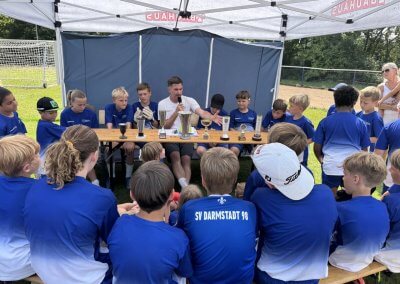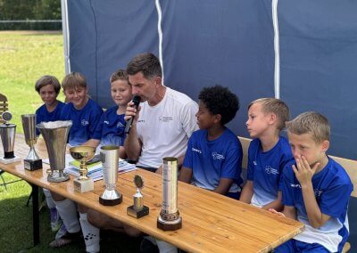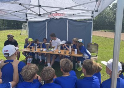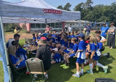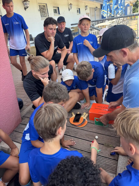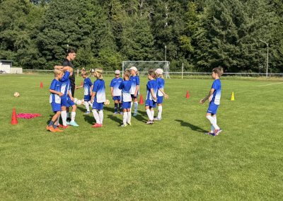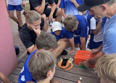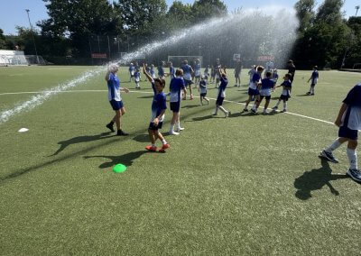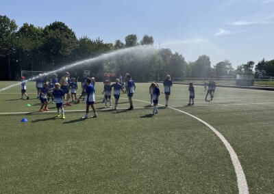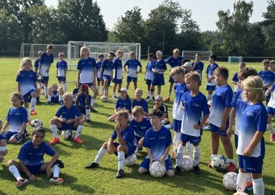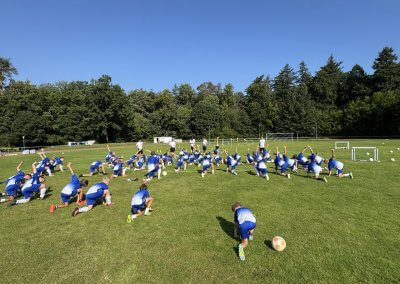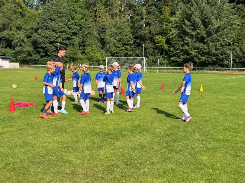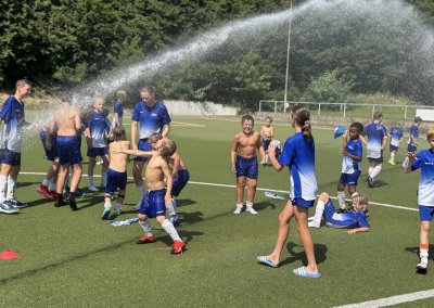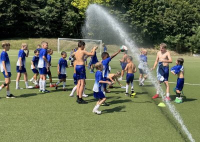 Im Mittelpunkt stand die Freude am Sport und Ball, Teamgeist und fußballerische Weiterentwicklung. Auf dem Trainingsplan standen vielfältige Übungen, darunter Dribblings, Passspiel und Spielformen, die von allen mit viel Einsatzbereitschaft gemeistert wurden. Neben dem Fußballtraining sorgten gemeinsame Aktivitäten wie ein entspannender Waldspaziergang sowie Abkühlung unter dem Rasensprenger für willkommene Abwechslung bei der Hitze.