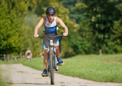 Direkt im Anschluss schickte sich Lia Hein (Schülerinnen C) an, nach ihrem Sieg im letzten Jahr eine Serie zu starten. Mit der drittschnellsten Schwimmzeit in hervorragender Ausgangsposition übernahm sie schon auf dem Rad deutlich die Führung und setzte gleich noch die schnellste Laufzeit hinten drauf, um nichts anbrennen zu lassen.